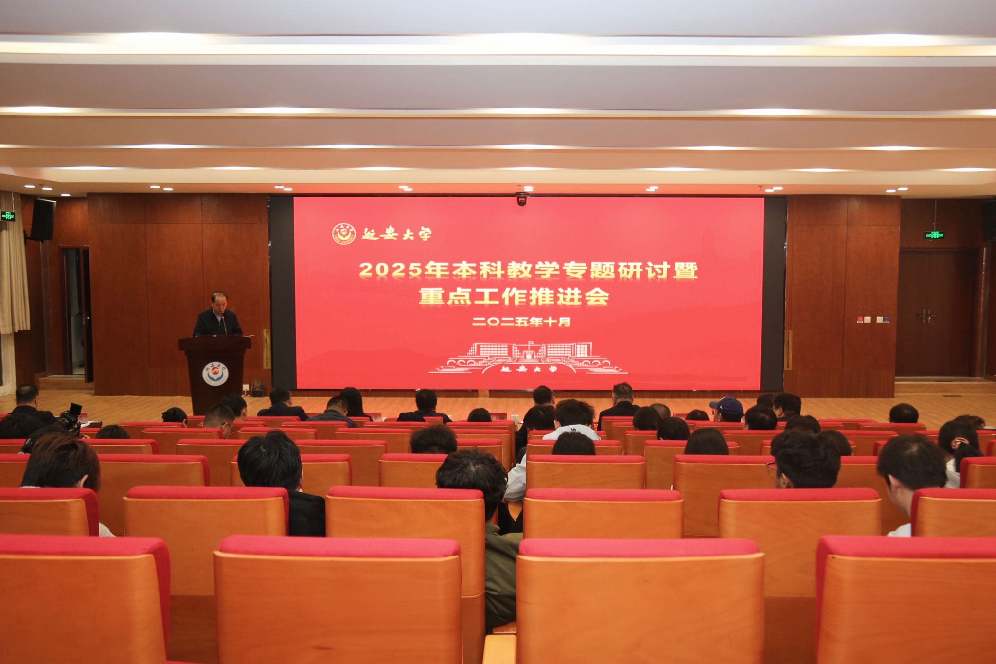本网讯 10月16日下午,我校在新城校区召开2025年本科教学专题研讨暨重点工作推进会。付峰副校长、各学院院长、副院长、教学及实验秘书、学生代表,教务处、教学质量监控与评估处、实验室建设与管理处全体人员参会。会议由教务处处长王进主持。