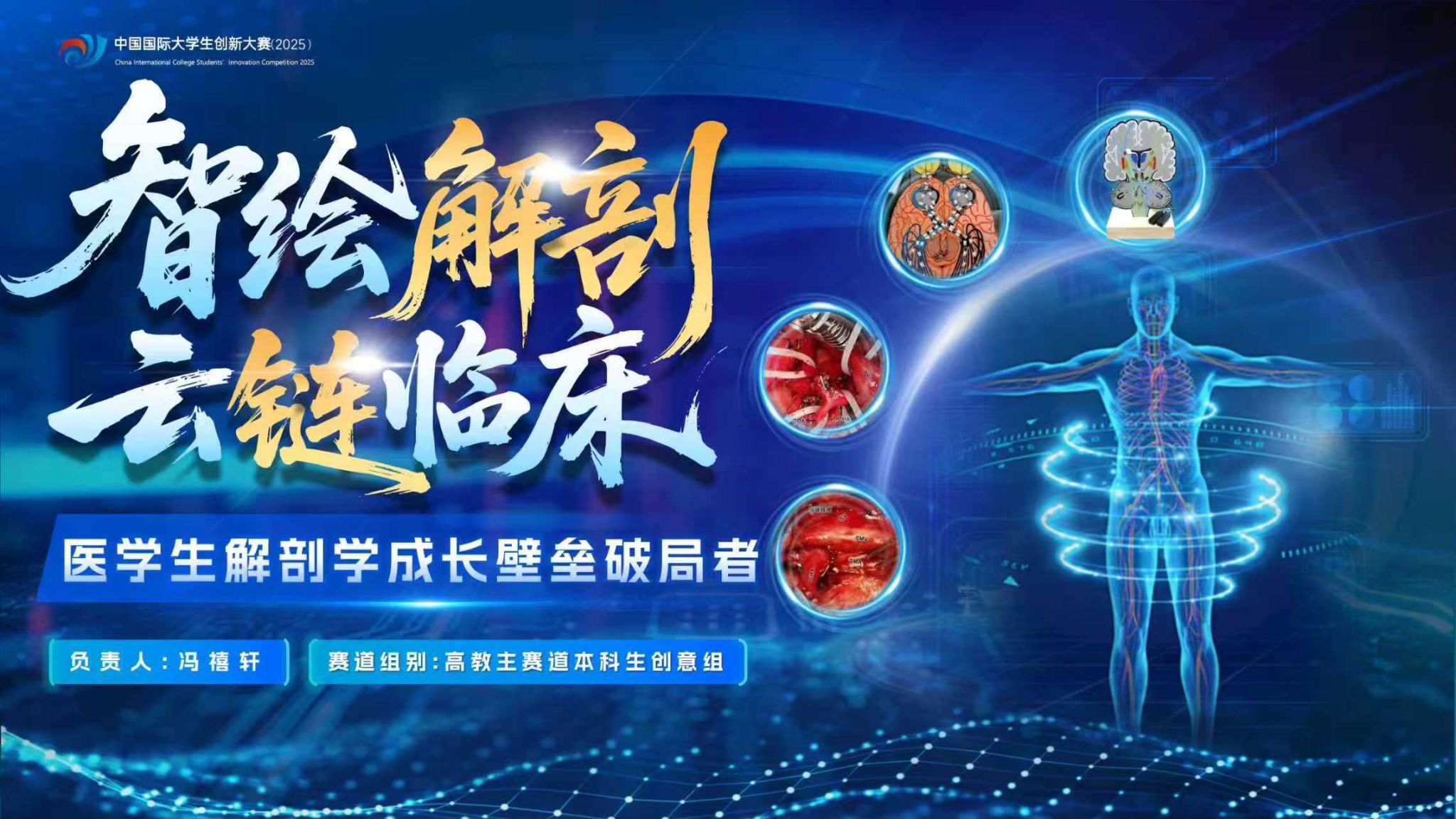 在学校“1195”工作布局和“3331”总体部署的牵引下,学校高度重视,精心部署,先后组织开展了“中国国际大学生创新大赛(2025)启动会”、校赛,邀请了23位校内外资深专家面向50余个重点项目包括400多名学生开展辅导打磨,期间,校领导多次参与项目打磨活动并给予指导。经过省级复赛网评及现场赛等环节,最终5个项目荣获省级金奖并被推荐参加全国总决赛网评,其中由临床医学专业22-3班冯禧轩同学负责,王璐教授等指导的“智绘解剖·云链临床——医学生解剖学成长壁垒破局者”项目进入全国总决赛现场赛并荣获银奖。本届赛事中,我校在获奖数量和质量上均创历史新高。