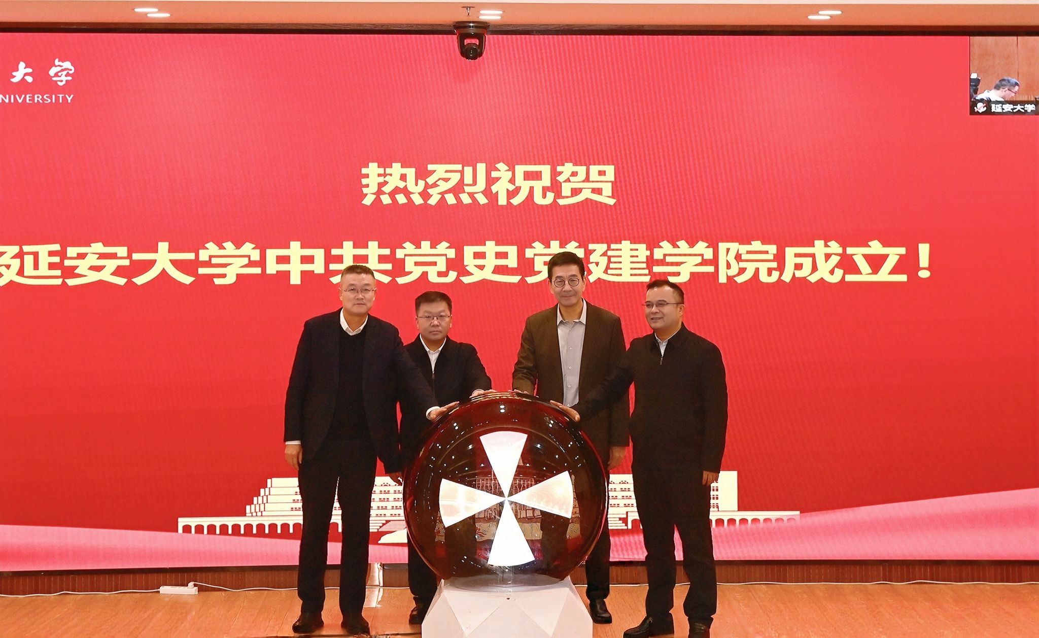 会议举行了延安大学中共党史党建学院揭牌仪式。校党委组织部部长解文元宣读了中共延安大学委员会《关于成立延安大学中共党史党建学院的通知》,杨凤城、王云祥、康伟、奚家米共同为延安大学中共党史党建学院揭牌。中共党史党建学院与政法与公共管理学院合署办公。