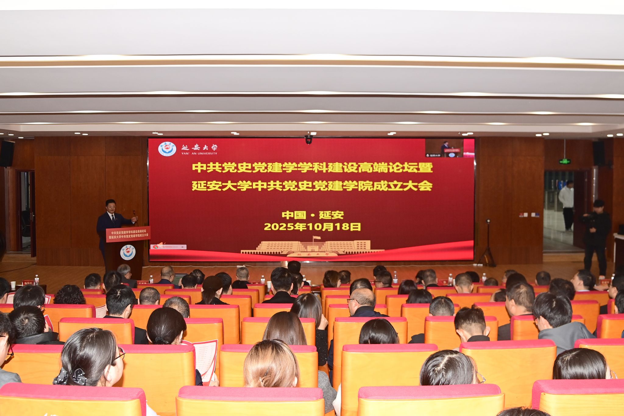 本网讯 10月18日,我校举办中共党史党建学学科建设高端论坛暨延安大学中共党史党建学院成立大会。延安大学校长奚家米,延安市人民政府副市长王云祥,中国中共党史学会副会长、中国人民大学中共党史党建学院院长杨凤城,榆林学院校长康伟,榆林学院副校长姚学慧,延安大学党委副书记吕达、副校长谭虎娃等出席。来自北京大学、中国人民大学、南京大学、北京理工大学、武汉大学和延安大学等33所高校的200余名学者与会。