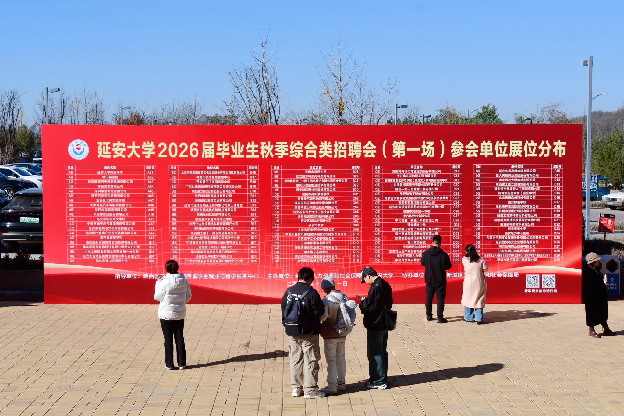 本网讯 为抢抓秋季校园招聘关键期,切实推进2026届毕业生就业工作,10月31日,我校与延安市人力资源和社会保障局联合主办的2026届毕业生秋季综合类招聘会(第一场)在新城校区体育中心举行。本次招聘会有来自全国16个省市(自治区)的128家单位报名参会,涵盖国企、民企、事业单位等多种类型。参会单位共提供职位723个、就业岗位9876个,覆盖我校所有专业,吸引了我校及其他高校4300余名毕业生参加。