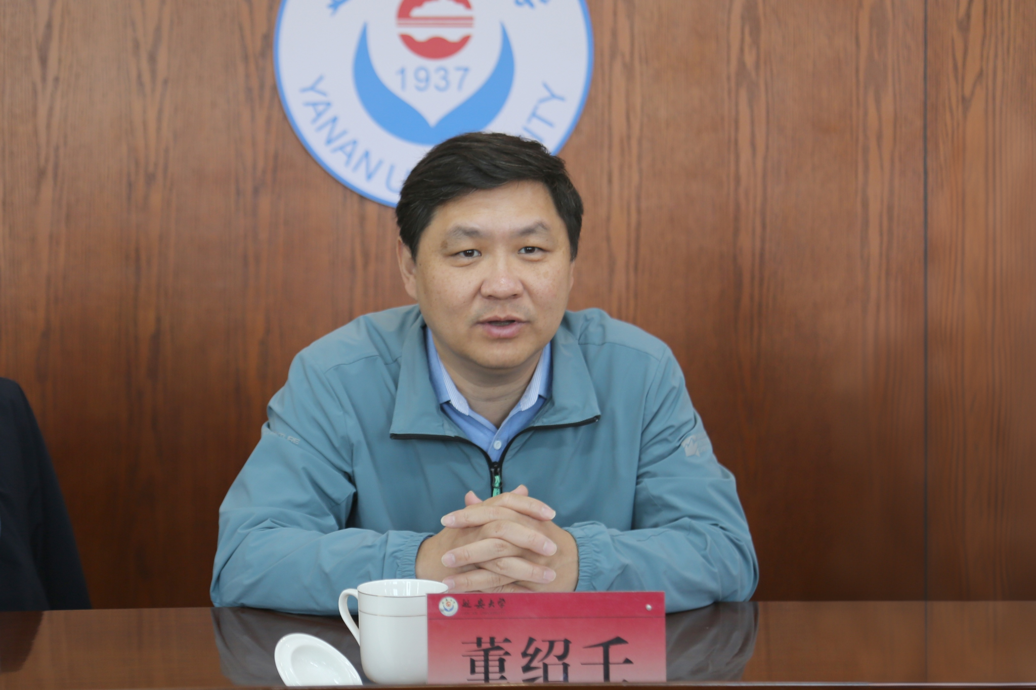 高子伟代表学校对董绍壬一行的到访表示热烈欢迎。他在致辞中回顾了董必武等老一辈革命家和齐教习等老同志与延安大学的深厚历史渊源,介绍了学校近年来在教育教学、科学研究和人才培养等方面取得的重要进展。他表示,学校将始终铭记各级领导的关怀与支持,坚定不移地传承红色基因,赓续红色血脉,加快推进学校高质量发展,将延安大学建设得“更有特色、更有水平”。