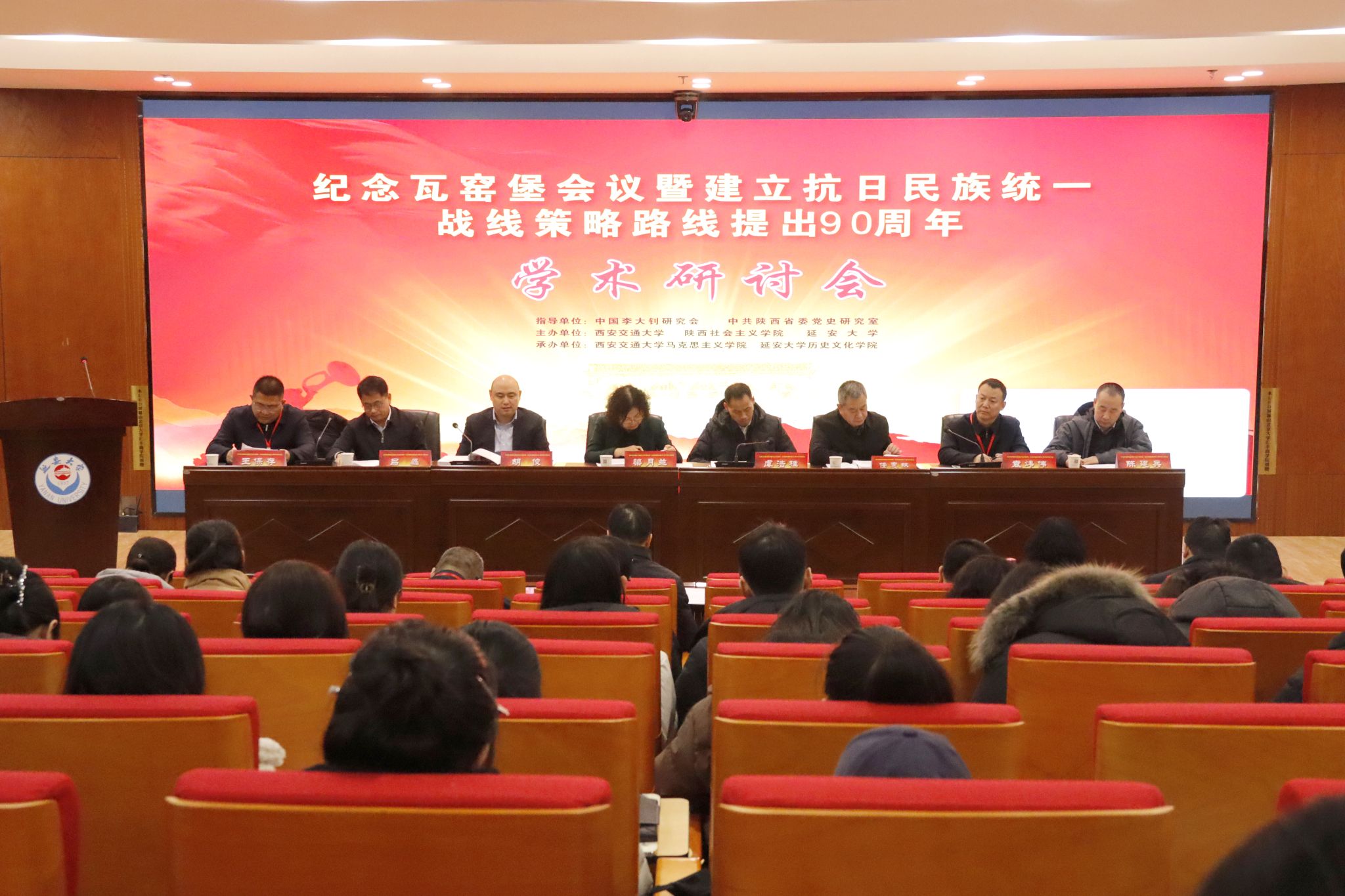 本网讯 12月28日,由中国李大钊研究会、中共陕西省委党史研究室指导,西安交通大学、陕西社会主义学院、延安大学主办,西安交通大学马克思主义学院、延安大学历史文化学院承办的“纪念瓦窑堡会议暨建立抗日民族统一战线策略路线提出90周年”学术研讨会在我校新城校区举行。中共陕西省委统战部副部长虞浩桂,中共陕西省委党史研究室一级巡视员梁月兰,中共陕西省委党史研究室原副主任、中国李大钊研究会特邀副会长任惠林,中国李大钊研究会秘书长、北京大学李大钊研究中心主任胡俊,陕西社会主义学院党委委员、副院长袁炜伟,延安大学副校长吕磊出席会议。原中共中央党史研究室宣传教育局副局长薛庆超,西安交通大学党委常委、宣传部部长、统战部部长成进线上出席会议。研讨会开幕式由延安大学历史文化学院院长王保存教授主持。