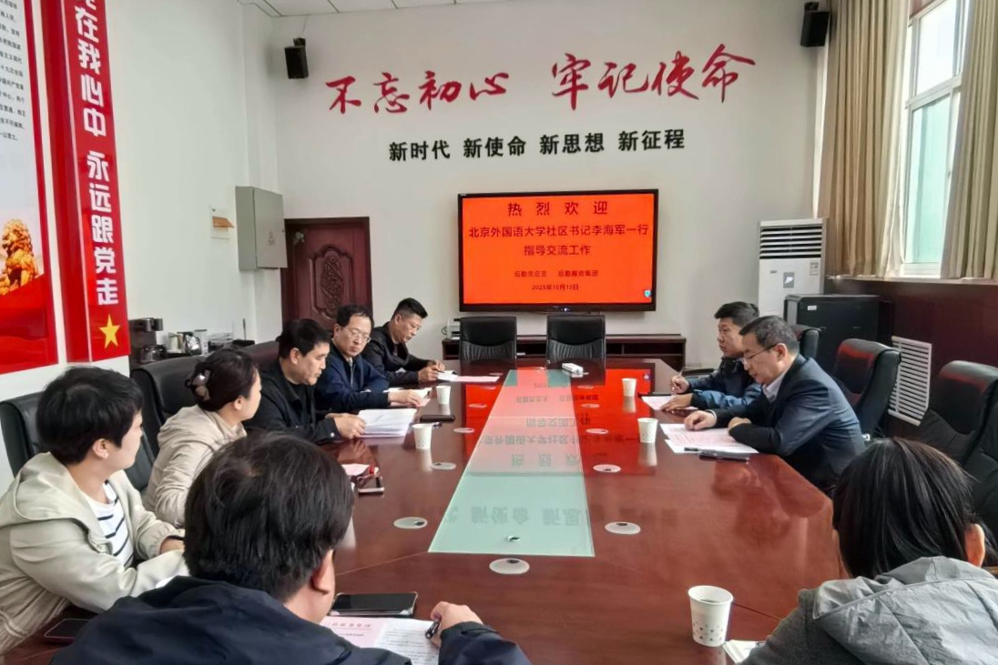 本网讯 10月15日上午,北京外国语大学社区中心书记、主任李海军一行2人来我校后勤处座谈交流。后勤党总支书记李乔飞,后勤处在家领导及相关中心负责人陪同并参加座谈会。