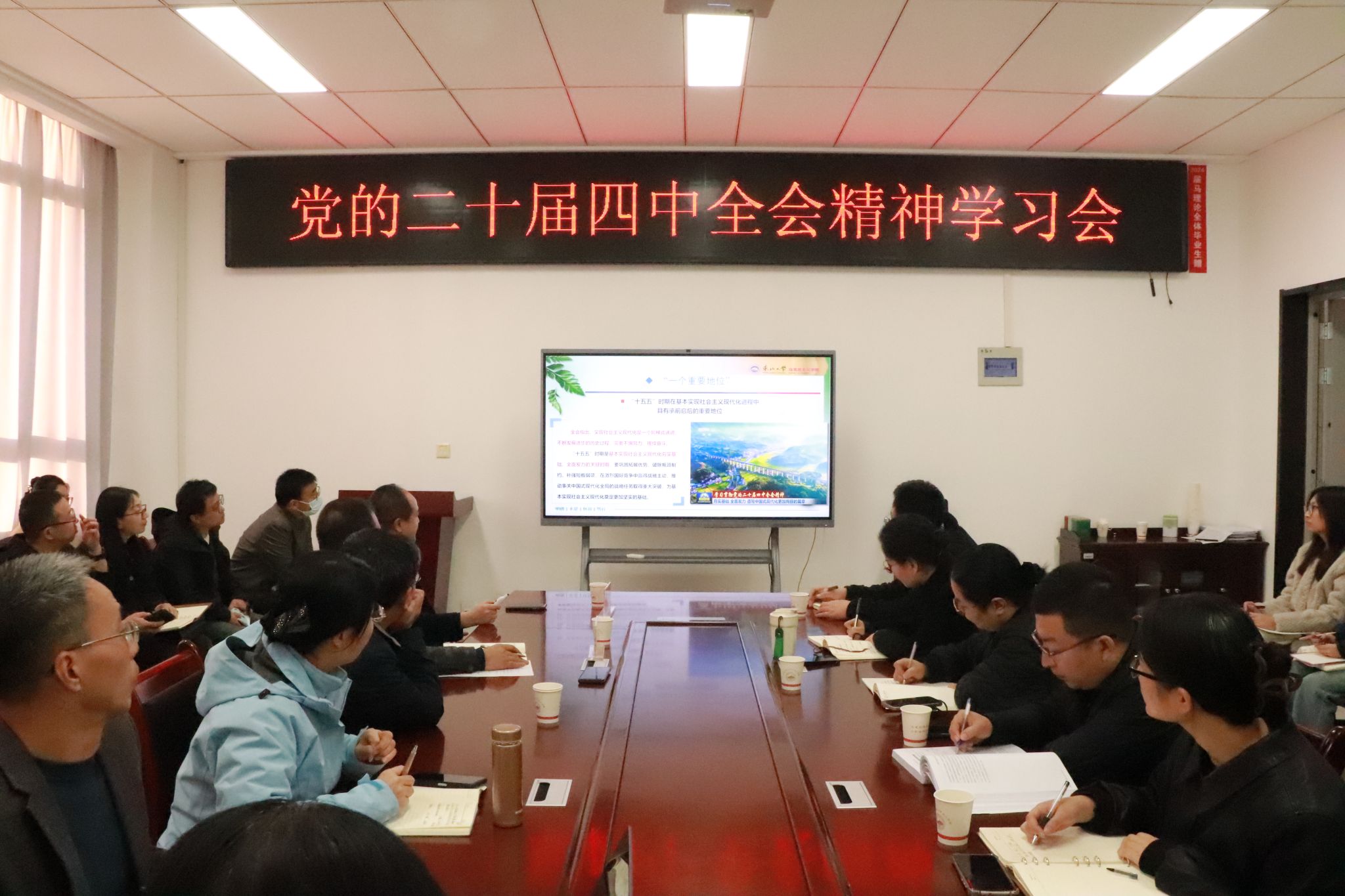 本网讯 为深入学习贯彻党的二十届四中全会精神,切实提升全院师生对全会精神的深度理解和自觉践行,10月29日下午,马克思主义学院邀请全国高校学习宣传党的二十大精神师生巡讲团成员东北大学任鹏教授作了全会精神专题辅导报告。学院全体教师和学生党员参加了会议,学习会由学院党委书记张彬主持。