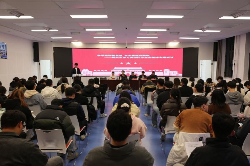 本网讯 10月28日晚,由学工部组织召开的“学思践悟新思想 自主管理启新程”研究生学习党的二十届四中全会精神专题会议,在新城校区大学生活动中心举行。马克思主义学院教授郝琦应邀作党的二十届四中全会精神学习辅导。党委组织部、党委学工部、研究生院、校团委相关负责同志及工作人员参加会议。