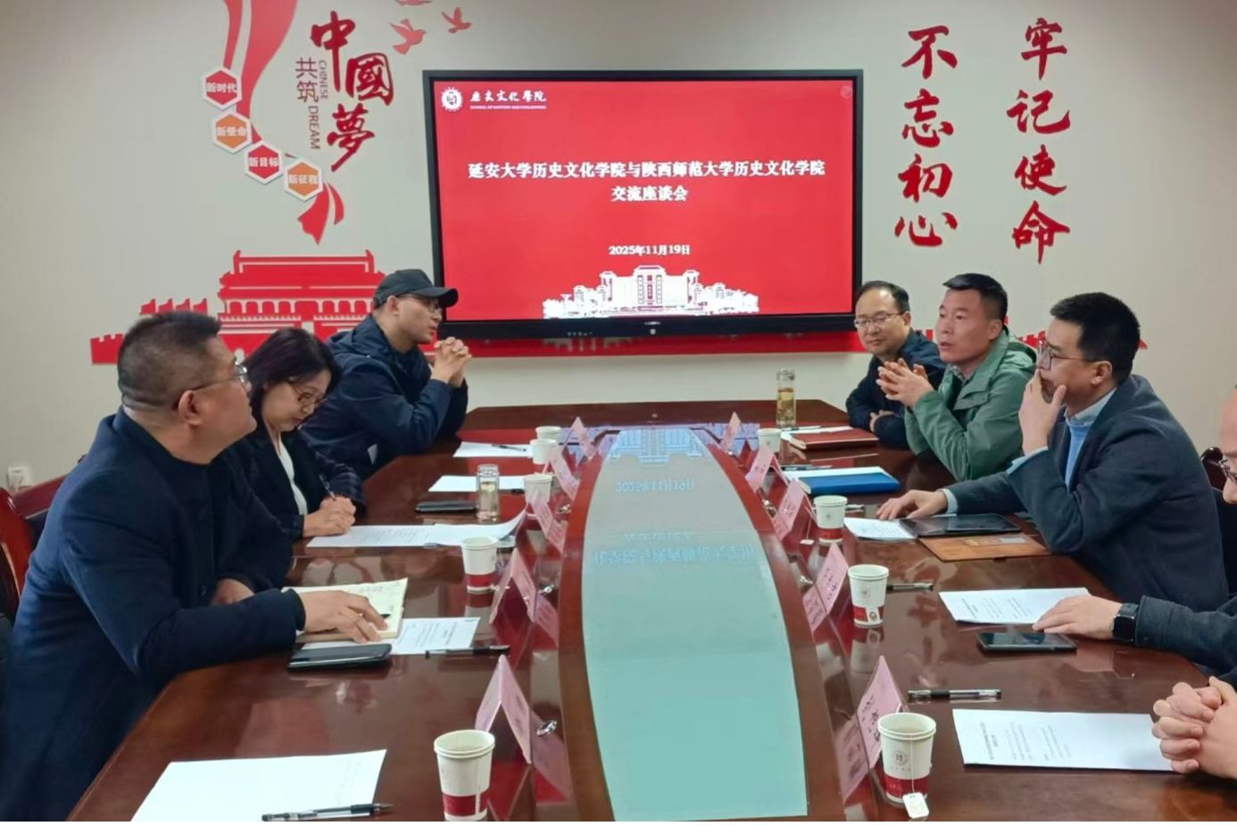 在与西北大学的座谈中,王保存详细介绍了我校历史文化学院近年来的发展成就。西北大学历史学院院长李军对我院在中国史学科建设领域取得的成绩给予了充分肯定。他表示,西北大学与延安大学在历史上渊源颇深,今后双方可以建立全面合作关系,在重大项目申报、基地建设、人才培养等领域开展合作。曹循副院长表示,明清到近代,陕北地区对中国历史多次产生重要影响。今后双方可以实现中国史各二级学科的优势互补,形成陕西省历史学高层次人才培养的新格局。