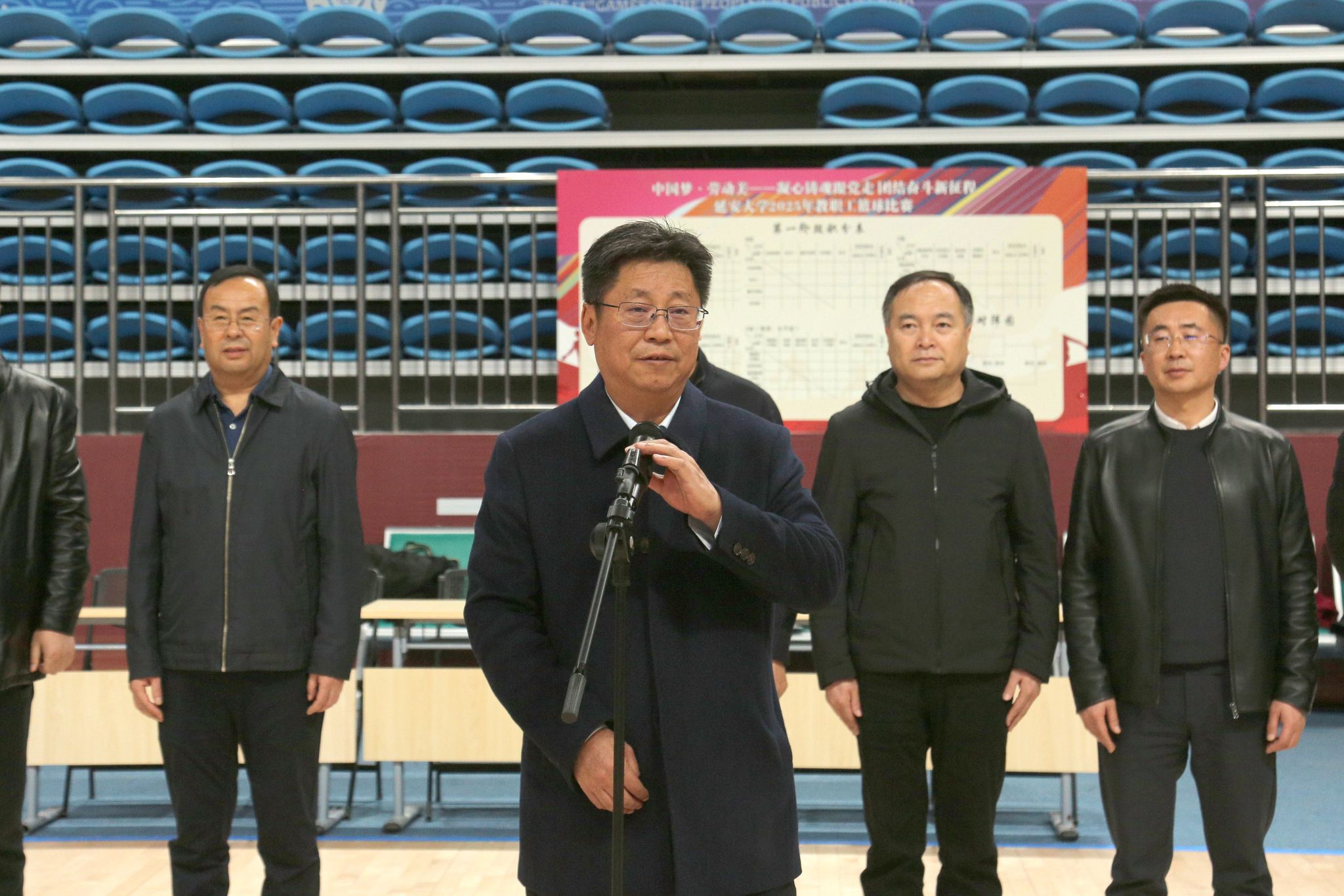 本网讯 11月19日下午,由校工会主办,体育学院、教职工篮球协会、体育场馆运营管理中心承办的“中国梦·劳动美——凝心铸魂跟党走 团结奋斗新征程”2025年教职工篮球赛,在新校区体育馆开幕。校党委副书记吕达出席开幕式,学校各部门、各学院主要负责人与全体运动员、裁判员及教职工代表参加了开幕式。开幕式由校工会副主席张永东主持。