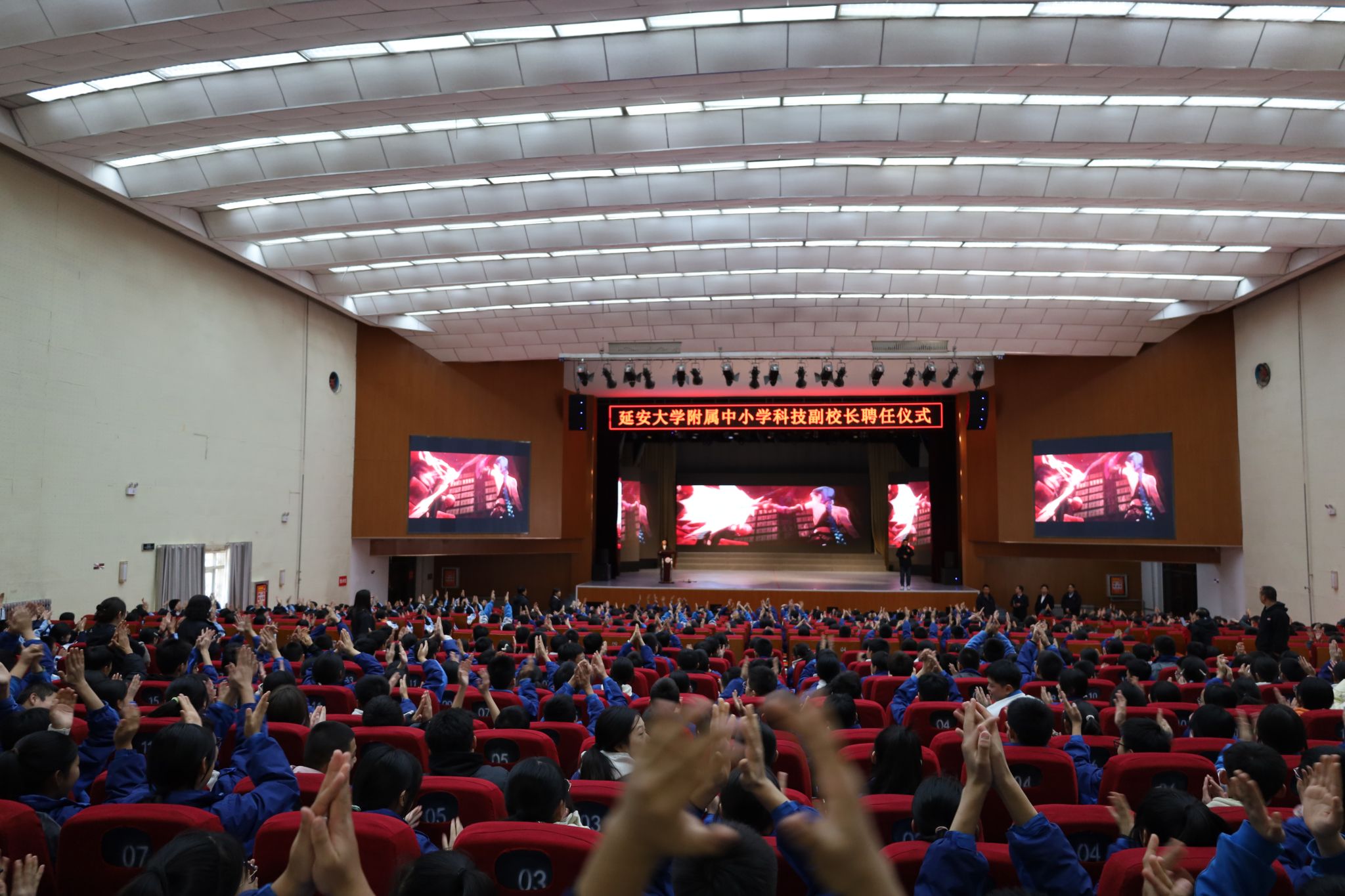 本网讯 11月20日,基础教育中心在杨家岭校区学生大礼堂隆重举行科技副校长聘任仪式暨人工智能专题报告会。国家级领军人才、西安交通大学二级教授任鹏举受聘为延安大学附属中小学科技副校长,并为附属中小学师生作专题报告。