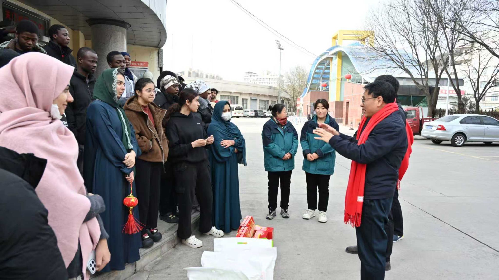 本网讯 在马年春节即将来临之际,校党委委员、副校长吕磊带队开展春节前走访慰问活动,亲切看望坚守岗位的值班职工和留校国际学生,向他们致以节日的诚挚问候和新春的美好祝福。国际学院院长成铭、副院长许多文陪同慰问。
