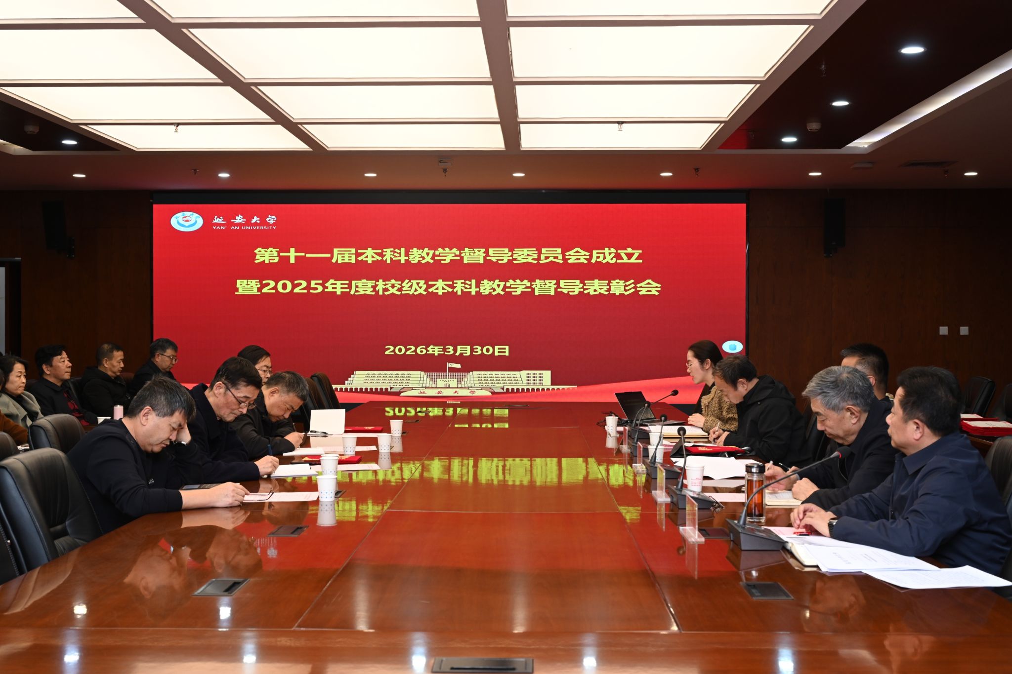 本网讯 3月30日下午,我校在新城校区行政楼二楼会议室召开第十一届本科教学督导委员会成立暨2025年度校级本科教学“优秀督导委员”表彰会。副校长谭虎娃出席会议并讲话,第十届、第十一届本科教学督导委员会全体委员及教学质量监控与评估处全体工作人员参加会议。会议由评估处处长王文东主持。