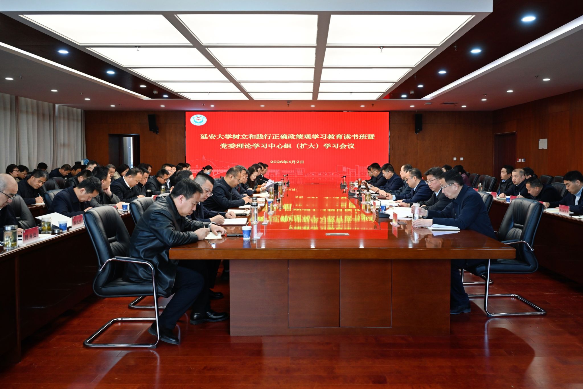 本网讯 3月31日至4月2日,延安大学举办树立和践行正确政绩观学习教育读书班暨党委理论学习中心组(扩大)学习会议,深入学习领会习近平总书记关于树立和践行正确政绩观的重要论述并开展交流研讨,教育引导全校党员干部进一步深刻把握正确政绩观的核心要义与实践要求,自觉为人民创造政绩、以实干创造政绩,推动“十五五”开好局、起好步。